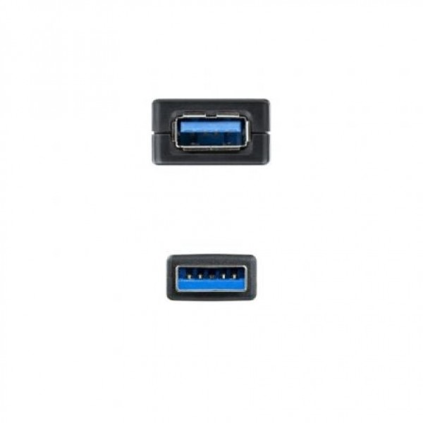 Especificaciones:. Cable prolongador USB 3.0 con conector tipo A macho en un extremo y tipo A hembra en el otro.. Lleva amplificador para amplificar la señal de USB.. Máxima velocidad de transferencia: 5Gbps.. Es una solución ideal para necesidades de cable USB con longitud de más de 5 metros hasta un máximo de 20 metros (uniendo 4 cables prolongadores con alimentador).. No requiere software ni controladores, una solución totalmente plug and play.. Compatible con USB 2.0.. Longitud: 5 m.. Color: negro.. Normativas: RoHS.. Test de Funcionamiento: 100% testado.. Contenido del embalaje:. 1 x Cable USB 3.0 prolongador con amplificador, tipo A/M-A/H, 5 m