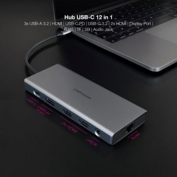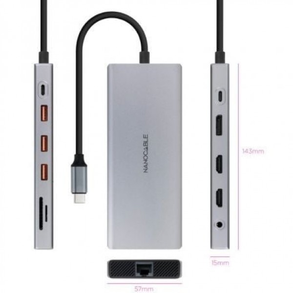 Docking Tipo-C Nanocable 10.16.4605/ 3xUSB/ 1xHDMI 4K/ 1xUSB Tipo-C PD/ GrisConexión USB-C 3.1, tran..