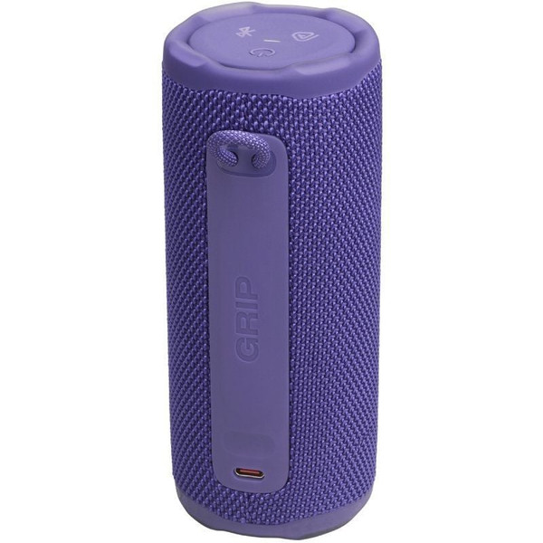 El JBL Grip puede ser lo suficientemente pequeño como para sostenerlo con una mano, pero ofrece un potente sonido JBL Pro. AI Sound Boost analiza la música en tiempo real y utiliza un algoritmo para optimizar el sonido, logrando más potencia y menos distorsión.