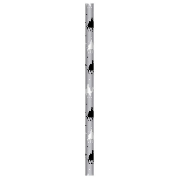 Papel de regalo 70x500 con un acabado metalizado brillante que captura la magia de los Reyes Magos. Fondo dorado con ilustraciones detalladas de los tres Reyes Magos: Melchor, Gaspar y Baltasar, montados en sus majestosos camellos, siguiendo la estrella de Belén. Perfecto para envolver regalos de manera especial y hacer que el destinatario sienta la magia y la emoción de la ocasión.