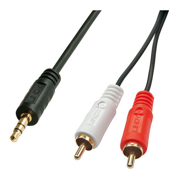Lindy 35685. Conector 1: 2 x RCA, Género del conector 1: Macho, Conector 2: 3,5mm, Género del conector 2: Macho, Contactos del conector chapado: Oro, AWG calibre del cable: 28, Longitud de cable: 10 m, Color del producto: Negro