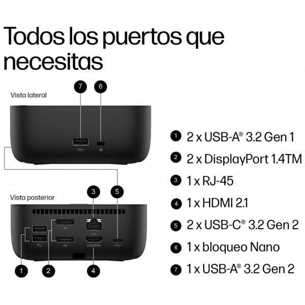 Empieza el día con menos complicaciones y más energía. La base de acoplamiento HP USB-C de 100 W G6 inicia tu ecosistema a medida que llegas, se conecta al instante[1] a través de un único cable USB-C y optimiza tu configuración con puertos amplios y una conectividad segura e impecable, todo ello mientras te mantienes al día con una gran capacidad de gestión remota.