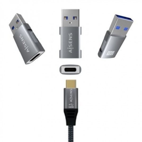 Mini Adaptador AISENS USB 3.2 GEN2 10G 3A, Tipo USB-C/H-A/M, Gris