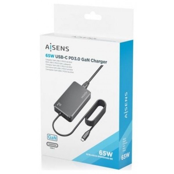 AISENS - CARGADOR DE SOBREMESA GaN 65W PD3.0 1XUSB-C 1.8M, NEGRO en Huesoi