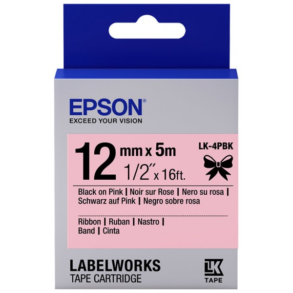 Epson Label Cartridge Satin Ribbon LK-4PBK Black/Pink 12mm (5m) Satin Ribbon Tape Pink Negro 12 mm 5 m