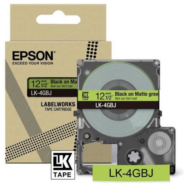 EPSON Cartucho de etiquetas Matte Tape Green/Black 12mm(8m) LK-4GBJ en Huesoi