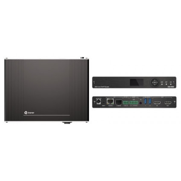 Kramer Electronics KDS-17DEC. Máxima resolución de video: 3840 x 2160 Pixeles, Velocidad máxima de cuadro: 85 pps, Formatos gráficos soportados: 640 x 350, 1024 x 768 (XGA), 1152 x 864 (XGA+), 1280 x 720 (HD 720), 1280 x 800, 1360 x 768.... Color del producto: Negro, Material de la carcasa: Aluminio, Indicadores LED: Estado. Tipo de interfaz ethernet: Gigabit Ethernet, Ethernet LAN, velocidad de transferencia de datos: 1000 Mbit/s, Estándares de red: IEEE 802.1x. Voltaje de salida de adaptador AC: 20 V, Corriente de salida de adaptador AC: 6 A. Ancho: 189 mm, Profundidad: 145 mm, Altura: 27,6 mm