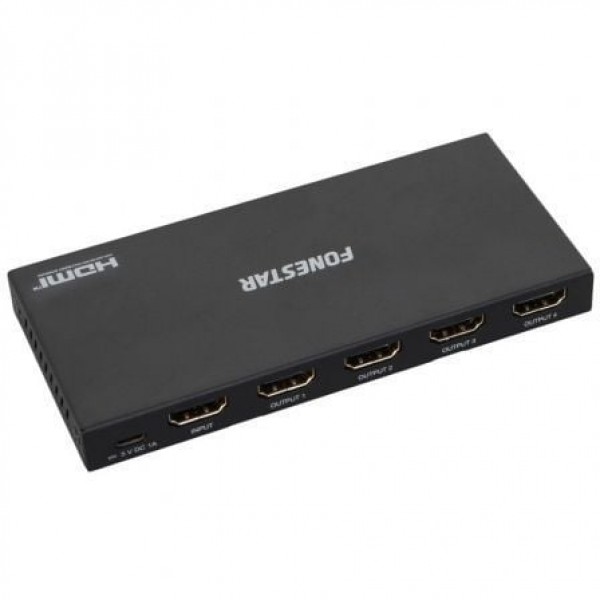Distribuidor HDMI 2.0 (1 entrada x 4 salidas).Distribuye la misma imagen en varias TV. Se puede mostrar el mismo contenido de vídeo y audio en diferentes TV para ser visto por más personas.