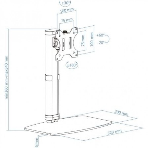 - Rango de ajuste para la altura del soporte: 360-540 mm