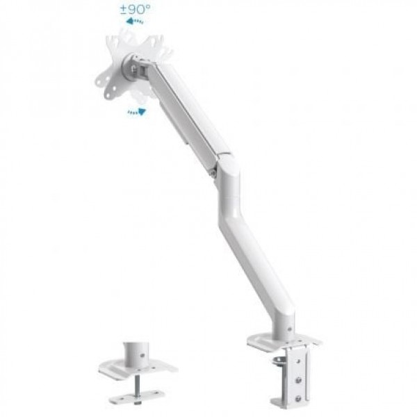 Agrega flexibilidad y ergonomía a tu lugar de trabajo.. Mueve sin esfuerzo el soporte con el mecanismo asistido por muelles. Adapta el monitor a la postura más cómoda que necesites para conservar una buena higiene postural. Disponible en dos colores: gris espacial y blanco. . . Especificaciones:. . Pantallas soportadas: 17""-32"". Compatible con VESA: 75x75 y 100x100. Peso máximo soportado de pantalla: 2-9 kg. Brazo regulable con mecanismo asistido por muelles. ángulo de inclinación: +55º/-55º. ángulo de giro: +90º/-90º. ángulo de rotación: +180º/-180º. Altura ajustable hasta 428 mm. Extensión máxima del brazo: 516 mm. Instalación mediante abrazadera o tornillo pasante. Sistema de organización de cables. Compatible con pantallas curvas. Color: Blanco. Peso neto: 2,2 kg. Peso bruto: 2,74 kg. Medidas del embalaje: 435x155x95 mm