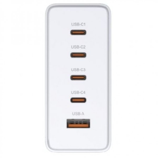 - Cinco puertos USB-C/USB-A: Cuenta con 4 puertos USB-C y 1 puerto USB-A para cargar 5 dispositivos simultáneamente