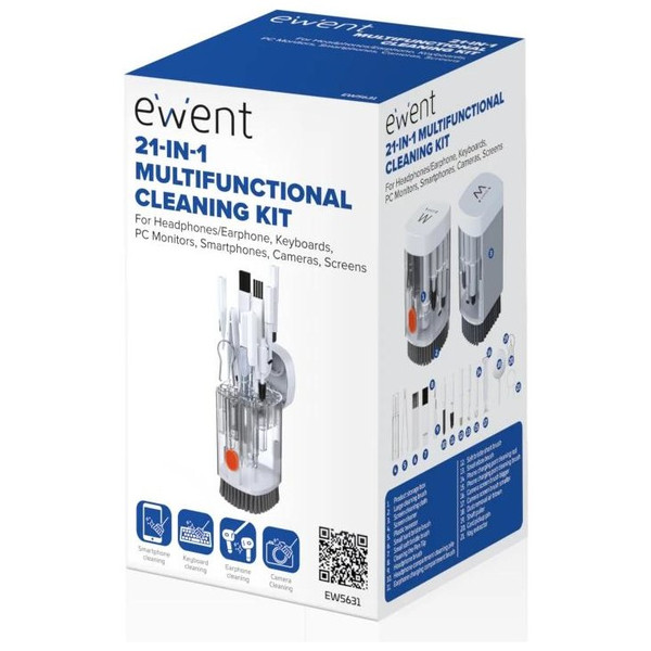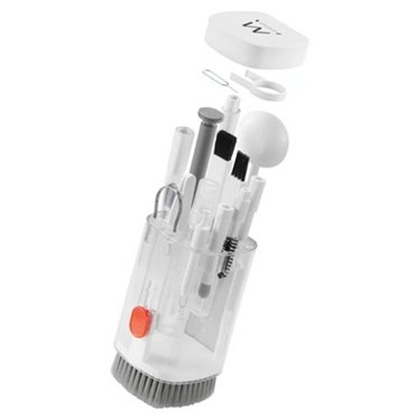 | Accesorios | - 1 x Estuche para almacenamiento del producto - 1 x Cepillo de limpieza (para teclado y pantalla) - 1 x Paño para limpieza de pantalla - 1 x Botella de spray de limpieza de 3 ml (vacía) - 1 x Pinzas de plástico - 1 x Cepillo pequeño de cerdas duras - 1 x Cepillo pequeño de cerdas suaves - 1 x Punta para bolígrafo de limpieza - 1 x Cepillo para limpieza de auriculares - 1 x Paño de felpa para estuche de auriculares - 1 x Cepillo para compartimento de carga de auriculares - 1 x Cepillo corto de cerdas suaves - 1 x Cepillo pequeño angulado - 1 x Palito para limpieza del puerto de carga del teléfono - 1 x Cepillo para limpieza del puerto de carga del teléfono - 1 x Cepillo grande para pantalla de cámara - 1 x Cepillo pequeño para pantalla de cámara - 1 x Soplador de aire para eliminación de polvo - 1 x Varilla extractora (extractor de eje) - 1 x Pin para extracción de tarjeta - 1 x Anillo extractor de teclas |