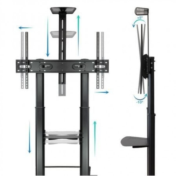 TOOQ SOPORTE DE SUELO CON RUEDAS CON REGULACIÓN DE ALTURA PARA PANTALLAS 60"-100", PES. MAX. 100 KG, VESA: MAX 1000x600 MIN 400x400 INCLINACIÓN: +5°/-10° (FS20404HM-B)