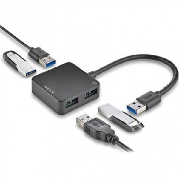 Hub USB 2.0 Aisens A104-0402/ 4xUSBAISENS - HUB USB 2.0, TIPO A/M-4XTIPO A/H, NEGRO, 30CM Hub USB 2..