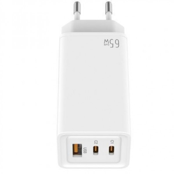 Cargador 65W GaN 2 USB-C PD + 1 USB-A Blanco