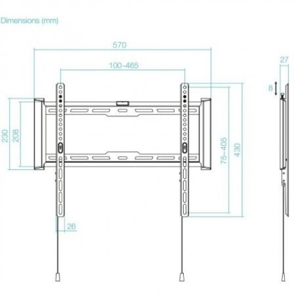 Soporte Fijo de pared para pantallas 32"- 70", Negro