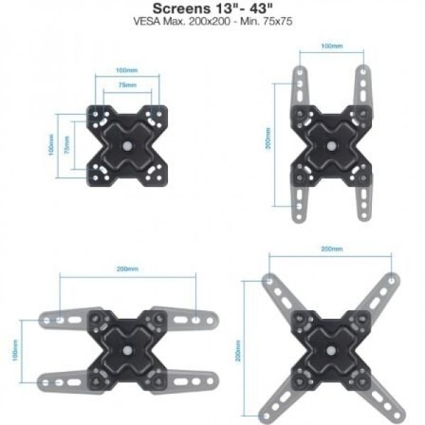 Compatible con VESA: 75x75, 100x100, 100x200, 200x100, 200x200