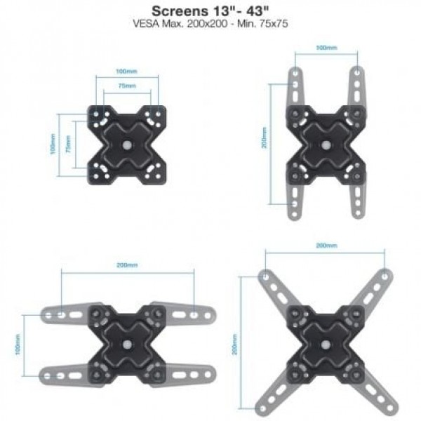 Compatible con VESA: 75x75, 100x100, 100x200, 200x100, 200x200