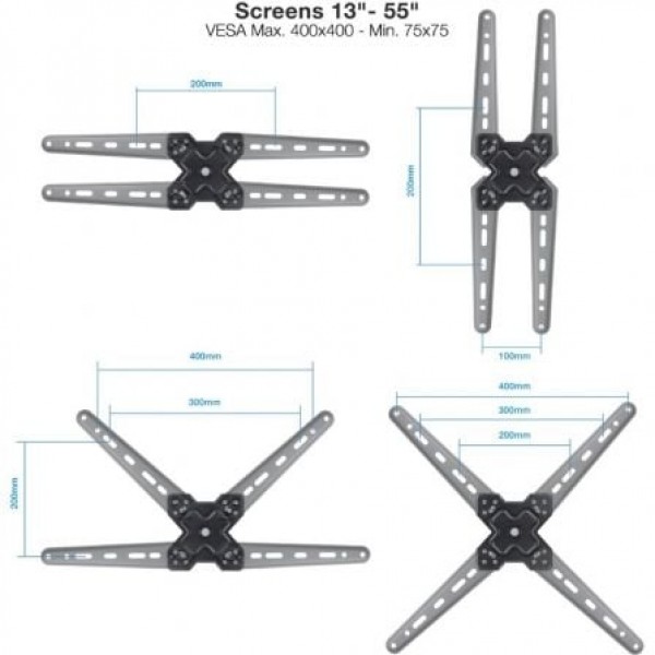 Compatible con VESA: 75x75, 100x100, 100x200, 200x100, 200x200, 300x200, 400x200, 300x300, 400x300, 400x400