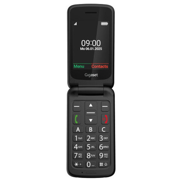 Gigaset GL595. Factor de forma: Concha. Capacidad de la tarjeta SIM: SIM única. Diagonal de la pantalla: 7,11 cm (2.8"), Resolución de la pantalla: 240 x 320 Pixeles. Resolución de la cámara trasera (numérica): 0,3 MP. Bluetooth. Tecnología de batería: Ión de litio, Capacidad de batería: 800 mAh, Tiempo de suspendido (2G): 320 h. Peso: 114 g. Color del producto: Negro
