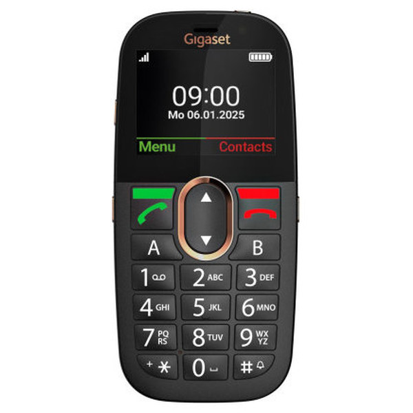 Gigaset GL695. Factor de forma: Barra. Capacidad de la tarjeta SIM: SIM única. Diagonal de la pantalla: 5,87 cm (2.31"), Resolución de la pantalla: 240 x 320 Pixeles. Resolución de la cámara trasera (numérica): 2 MP. Bluetooth. Tecnología de batería: Ión de litio, Capacidad de batería: 1400 mAh. Peso: 113 g. Color del producto: Negro