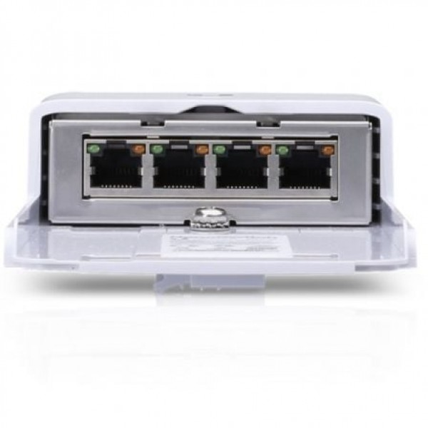 4 puertos gigabit: tres puertos 24V Passive PoE Out Passthrough, un puerto 24V Passive PoE In