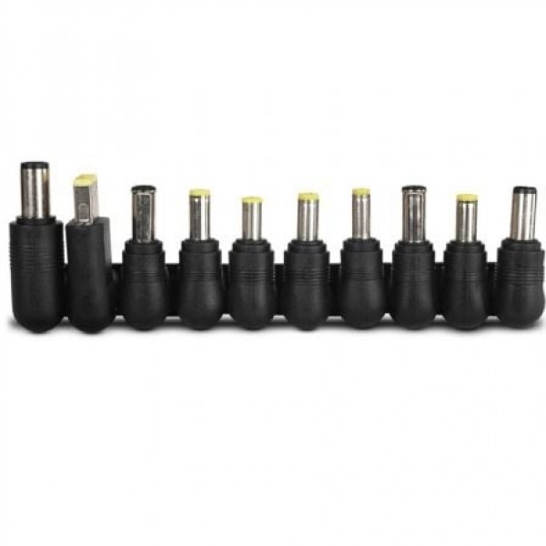 En Nox no queremos que te quedes sin energía en ningún sitio, por ello, hemos diseñado este cargador universal de corriente para portátil con regulación automática de voltaje. Dispone de 10 conectores distintos: 15V (Toshiba), 16V (IBM), 16V (Sony, Fujitsu), 18,5V (Compaq), 18,5V (HP, Compaq) 19V (Acer, Asus, Compaq, Dell, Fujitsu, Gateway, Toshiba, Lenovo, Liteon), 19V (Samsung), 19V (Acer, Compaq, HP, Fujitsu, Gateway, Toshiba, Liteon), 19,5V (Sony), 20V (Lenovo), los cuales abarcan la mayoría de las principales marcas de portátiles del mercado.