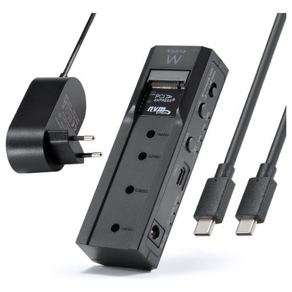 | Características | - Tipo de producto: Clonador estación de trabajo “dual bay” para 2.5"/3.5" HDD o SSD SATA y NVMe M.2 - Conectividad: USB-C (USB 3.2 Gen2) y modo offline de clonación sin necesidad de PC - Compatibilidad de discos: 2.5" SATA, 3.5" SATA, NVMe M.2 (M-Key) - Función de clonación offline: Permite copiar de 2.5"/3.5" SATA a NVMe M.2 y viceversa, sin ordenador - Indicadores LED de progreso en % (25 % / 50 % / 75 % / 100 %) - Instalación sin herramientas (“tool-free”), diseño abierto para mejor disipación de calor - Material: Plástico ABS con recubrimiento negro - Color: Negro Dimensiones y peso - Dimensiones: 150 x 110 x 30 mm - Peso: 450 g |