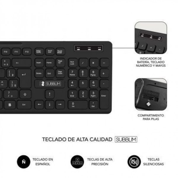 Conecta el teclado y el ratón con un sólo receptor USB Subblim MERGE, que además ofrece una avanzada tecnología inalámbrica de 2,4 Ghz hastauna distancia de 10 metros sin retrasos ni interrupciones.