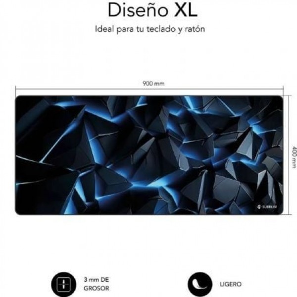 SUBBLIM Blue Obsidian XL Mouse Pad 900×400×3 mmAlfombrilla Gaming XXL con Base de Goma Antideslizante, Bordes Cosidos, Superficie Micro-Texturizada HD, Impermeable y Lavable para Teclado y Ratón.