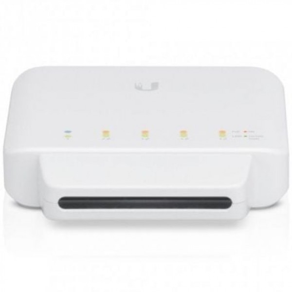 Construya y expanda su red con UniFi® Switch, parte del UniFi Enterprise System. El conmutador UniFi, modelo USW-Flex, es un conmutador Gigabit de capa 2 configurable con detección automática 802.3af PoE. Ofrece 5 puertos RJ45 Gigabit Ethernet, que proporcionan 1 entrada PoE y 4 enlaces de salida PoE a sus dispositivos.